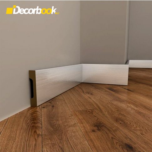 Profil wykonany jest z bardzo trwałego poliuretanu, dzięki czemu element jest odporny na uszkodzenia mechaniczne oraz wykazuje dużą niewrażliwość na wodę i wilgoć. Dodatkowo listwa została pokryta specjalną powłoką w kolorze aluminium, która nadaje jej bardzo efektowne wykończenie. Listwa podłogowa jest idealnym wykończeniem, zarówno dla domowych wnętrz, jak i różnego rodzaju przestrzeni użytku publicznego - od restauracji i hoteli po inne lokale użytkowe lub handlowe.