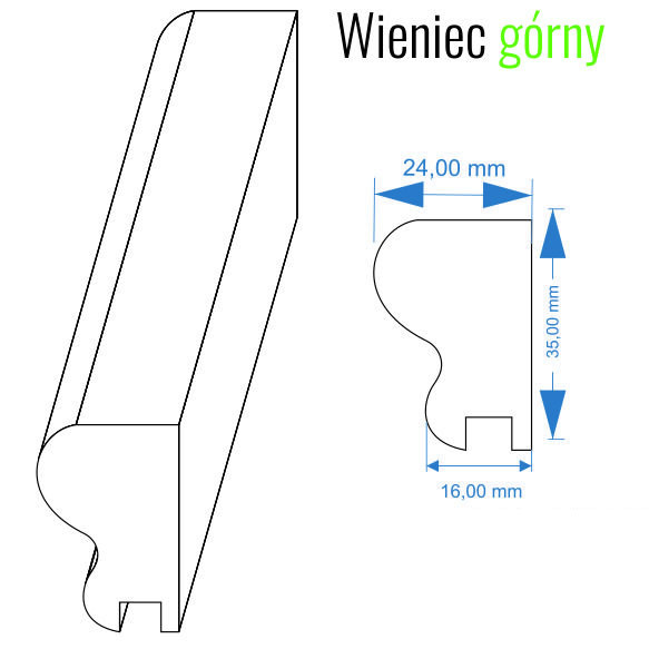 Element górny wykończeniowy do boazerii angielskiej dostępny jest w dwóch wersjach, zależnie od zapotrzebowania klienta: