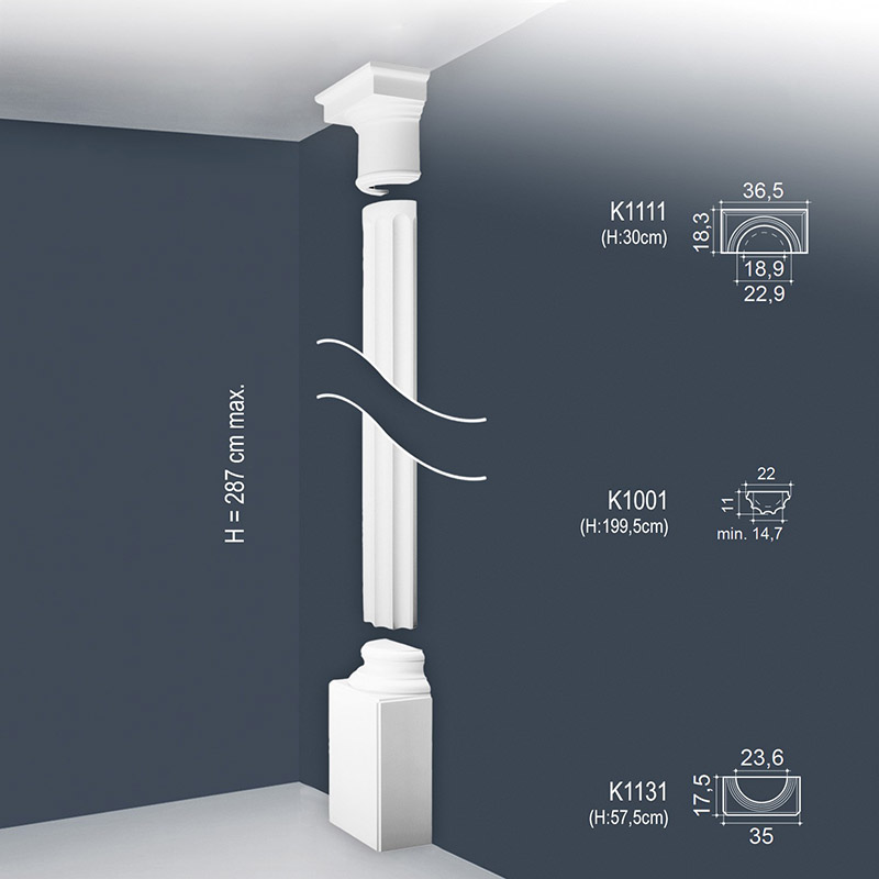 Kolumny oraz półkolumny warto pomalować, by nadać im odpowiedniego wyglądu i charakteru. Do malowania warto użyć farb lateksowych, silikonowych lub akrylowych. Nie zalecamy farb bazujących na rozpuszczalnikach, gdyż mogą zniszczyć sztukaterię. Kolumny wytworzone zostały z POLIURETANU. Jest to wysokiej jakości materiał, którego cechuje odporność na uszkodzenia mechaniczne i zadrapania. Nie poddaje się on niskim ani wysokim temperaturom. Jest ognioodporny i nie pochłania wilgoci. Jest bezpieczny dla alergików.