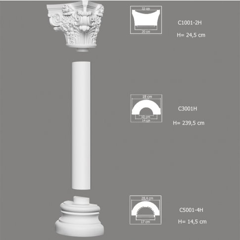 Kompletna półkolumna C4001H-1 marki Mardom Decor jest elementem dekoracyjnym, zastępuje kolumny w tych miejscach, gdzie nie mogą one być zainstalowane. Z racji materiału, z jakiego są wykonane, można je instalować w budynkach oraz na otwartych przestrzeniach, na przykład balkonach i tarasach. Często staje się elementem dekoracyjnym w hotelach, domach weselnych, salonach urody, restauracjach czy też domach jednorodzinnych.