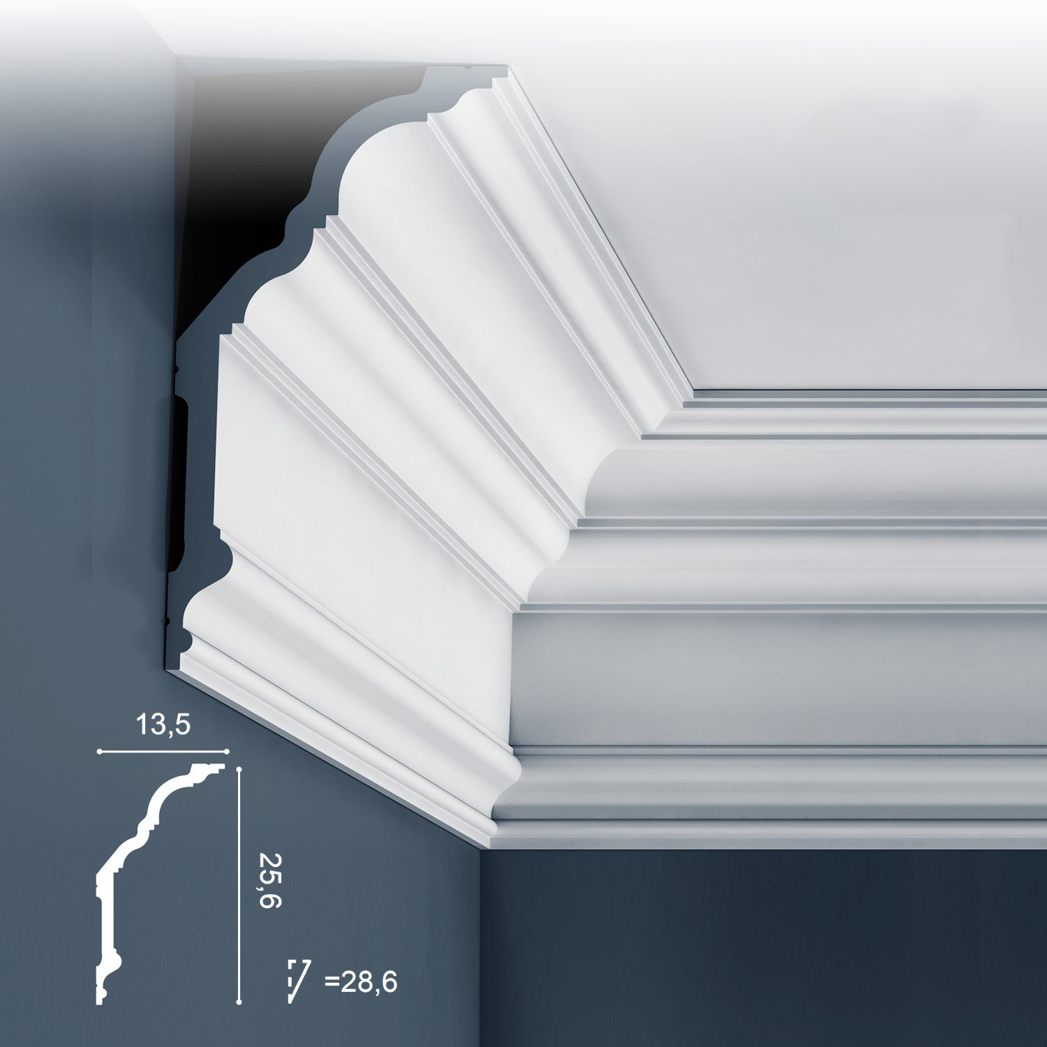 Listwa sufitowa C340 to efektowny element sztukaterii, który dzięki swojej sporej wysokości z łatwością zamaskuje nawet duże nierówności czy niedoskonałości występujące w miejscu łączenia ściany ze stropem. Jej oryginalny kształt sprawia, że idealnie komponuje się w każdym wnętrzu, tym klasycznym, jak i współczesnym.