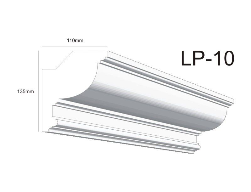 Listwa sufitowa LP10 to wysoka, elegancka listwa styropianowa, montowana w przestrzeni przysufitowej. Głównym zadaniem oferowanego panelu stropowego jest zamaskowanie miejsca łączenia ściany i sufitu i ewentualnych niedoskonałości w tym obszarze. Dodatkową korzyścią wynikającą z zastosowania produktu jest optyczne powiększenie wnętrza, które wydaje się wyższe, niż jest w rzeczywistości, jest to doskonałe rozwiązanie w pomieszczeniach o mniejszej kubaturze.